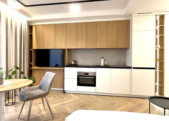 Apartament jest położony w odległości krótkiej przejażdżki od Muzeum Kinematografii w Łodzi. 1-pokojowy apartament leży około 10 min autem od Aquaparku Fali oraz mniej niż 200 m od dworca autobusowego Kilinskiego - Pilsudskiego.